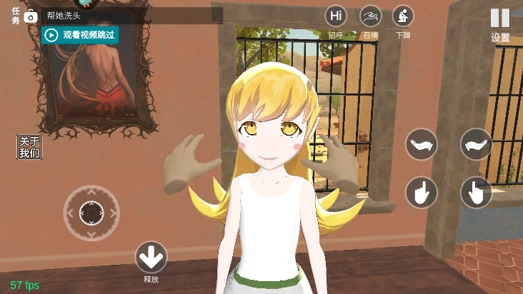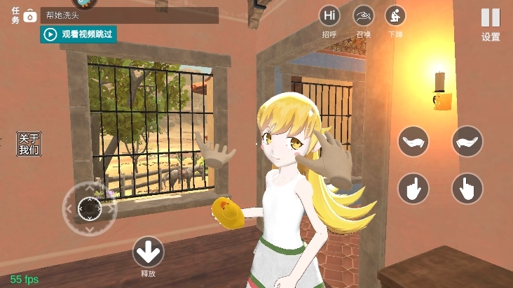 互动操作:看到小忍身边有互动图标,比如手、脸这些,就点一下,能摸摸头、牵牵手,增加好感度。