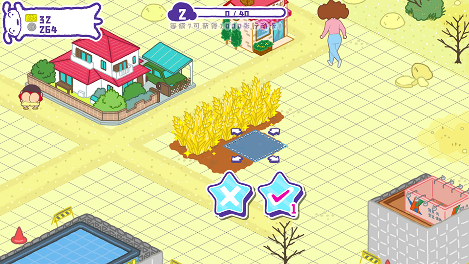 6、而且指引完成任务,这样可以获得大量硬币,用来购买各种装饰小镇,后续还会有Boss来袭击小镇,我们要保护春日部镇免受Boss的侵害。