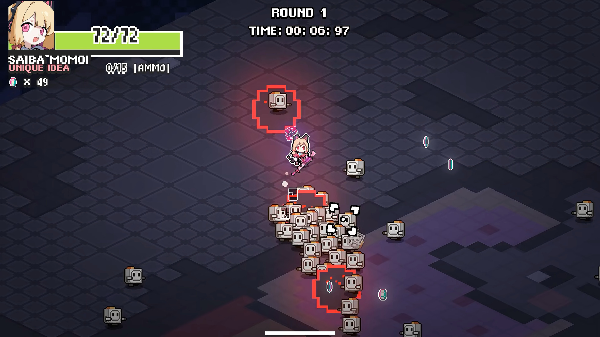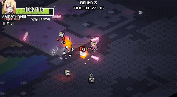 3、进入地下城后,通过虚拟摇杆移动角色,点击屏幕发射攻击消灭敌人。