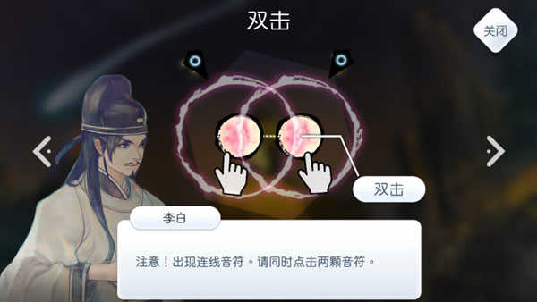 通过点触、滑动、拖曳的操作,并且融合书法文字元素,玩家可通过手指描绘书法字完成演奏。上百种各种难度的华丽谱面,满足不同玩家需求。