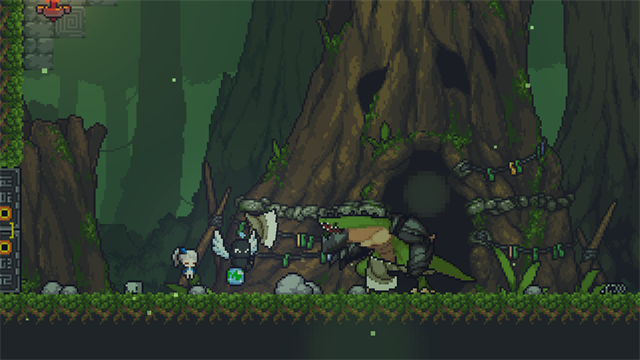 2、然后,地牢方面有着恶魔城一样的地图房间设定,还有贴心的房间传送功能。每次进入都是随机的地图,但是有几处是固定的。每层都有武器商人和食品商人,食品每层只能吃一次获得一个buff。