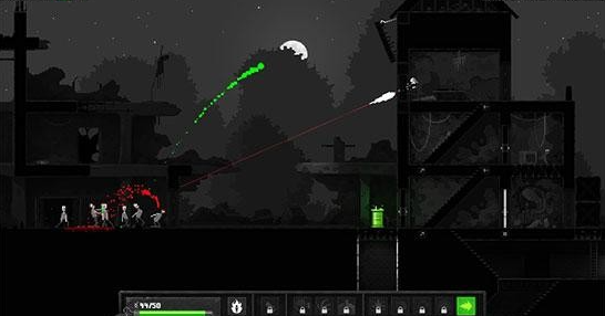 用自爆来破坏枪手前面的保护墙,因为越到后面人类的抵抗是会越来越强烈,所以在遇到火力过猛最好用自爆来将人类感染,只要沾到僵尸的血都会被感染。在地图中下方获得了一次注射的机会,后面也没有太多需要注意的地方,看到有攻击力的人类就选择自爆基本都没问题(僵尸的自爆对同类没有伤害,只有击飞效果),有些距离稍远的枪手直接选择注射病毒就OK了。