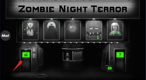 1、第一步我们下载安装进入恐怖僵尸之夜游戏点击左下方那扇门。