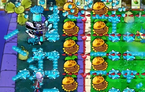 4、继续在左右两侧种植多个寒冰星星,在左侧补充一个寒冰菇。