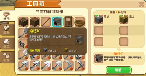 1、比如镐、铲、斧等,可以帮助玩家挖掘矿石、砍伐树木、挖掘土壤等,为建造提供材料。