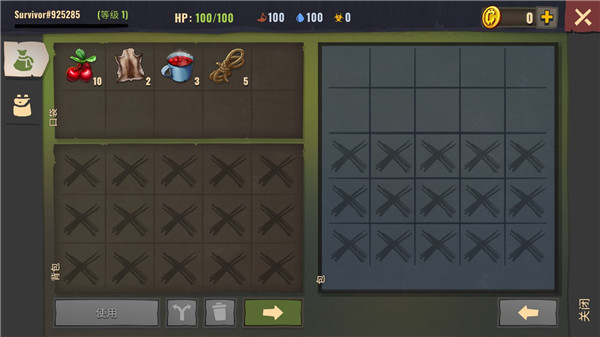 2、这时候会有提示有架坠落的飞机,先去,地上有好多包包,不急着捡!一个个打开,会有一把手枪,拿了手枪后就开始捡包包里的资源,这里要注意一下,这个游戏物品是按种类占背包格子的。