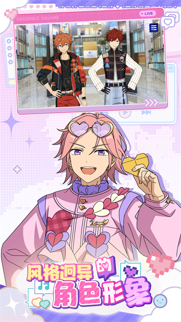 1、游戏中采用二次元画风让偶像们更加的帅气。