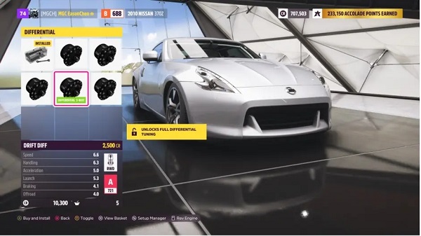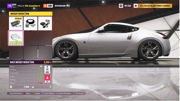 近两年,随着各种漂移赛事的热度逐渐升高,极限竞速也开始注重起漂移这种赛车技巧。 那么什么是漂移?漂移并不意味着失控。车辆打滑导致轮胎空转与地面摩擦产生烟雾也并不能称之为漂移。真正的漂移动作,在从起飘到入弯再到出弯全程都是可以控制的。 而在练习漂移之前我们也需要对车辆进行改装,下面以Nissan?370Z为例: