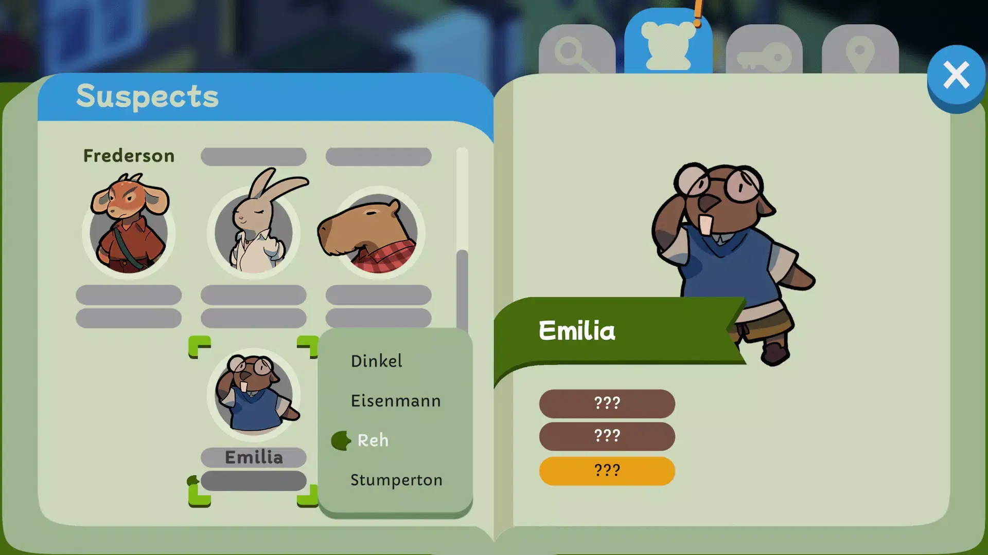 4、点击放大镜,可以更仔细地观察角色和环境,发掘隐藏的线索,助你更快锁定嫌疑人;