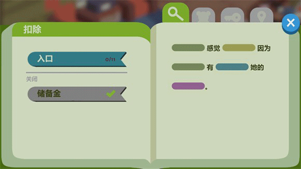 3、收集到足够线索后,进入推理阶段,在空白处填入正确信息,逐步还原案件真相;