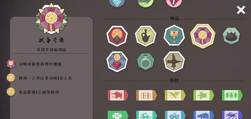 增大容错方面,圣杯能复活一名阵亡将军,战争号角能立刻为队伍补充士兵(非回血)。其他的就按需。