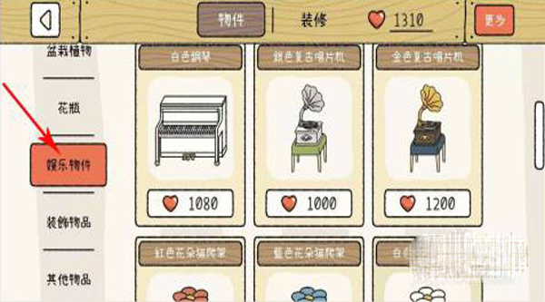 2、然后玩家就可以购买各种各样的娱乐物件并放置在房子里,在特定时间即可看到两个人互动。