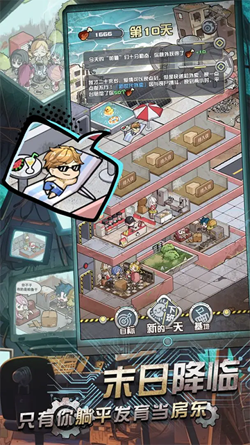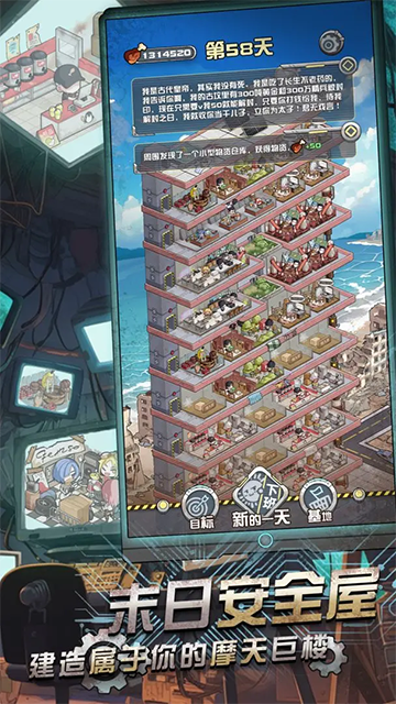 2、玩家将化身末日房东,建设自己的摩天大楼,收纳幸存者。