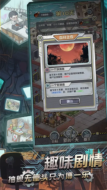 游戏中不仅包含了丰富的经营和战斗元素,还融入了多种无厘头的故事剧情。这些剧情为游戏增添了更多的趣味性和互动性,让玩家在末日世界中也能感受到轻松愉快的氛围。