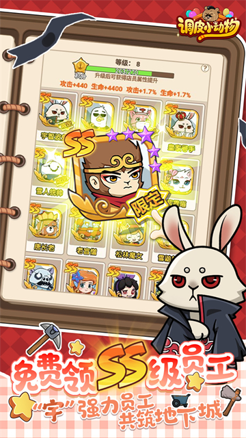 深入未知的地下世界,每一次探索都可能遇见拥有独特技能与性格的动物伙伴。招募它们,从狡猾的狐狸会计到强壮的熊经理,共同组建你的梦幻团队。