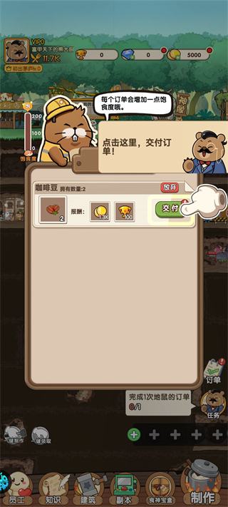 制作完成后返回订单界面,点击【交付】获取金币、奖杯等奖励,同时提升饱食度。