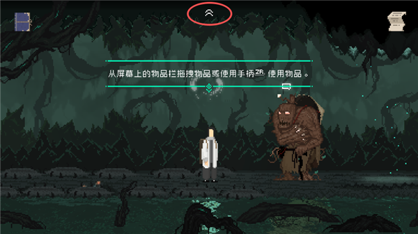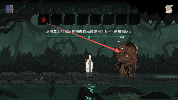 7、后续会遇见一个需要彼岸花的怪物,玩家可以将其给他,点击屏幕上方的箭头。