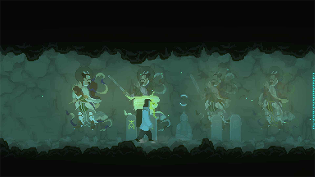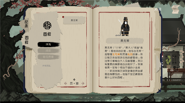 游戏用像素表现水墨画的风格,带领着玩家们感受民间志怪故事里的风景和人物,例如黄泉、黑白无常、牛头马面、土地公等。