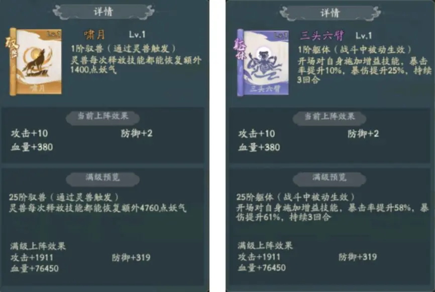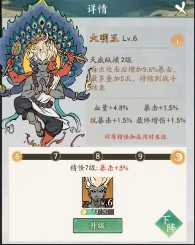 法天象地和三头六臂能够在增加我们暴击概率的同时增加暴击伤害,灭心魔种也能够提高我们的暴击伤害,解尸法的复活能够增加容错率,也可以换成金鸡啼鸣,这都根据玩家自己的灵兽做出相应的调整。