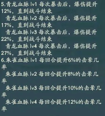 我们可以消耗先天灵草来激发自身的血脉,使用灵芝能够提高我们的悟性从而增加激发高品质血脉的概率,玩家可根据自己所玩的流派自行选择洗练的血脉,例如暴击流派选择青龙或者朱雀血脉。