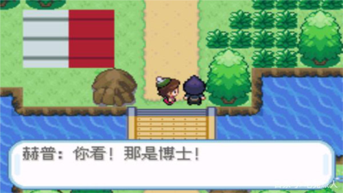 我们靠近之后,就可以与他们进行对话,对话完成我们就可以选择初始精灵了,御三家选择一只后就出门,赫普就会要和你对战,输赢无所谓,输了有人帮你承担输掉的金币。