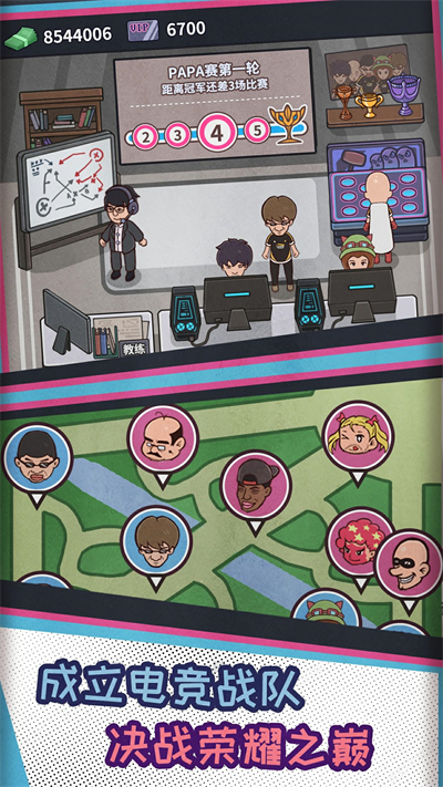跟随电竞浪潮的发展,成立自己的电竞战队,训练队员,参加赛事。追逐最高的荣耀。