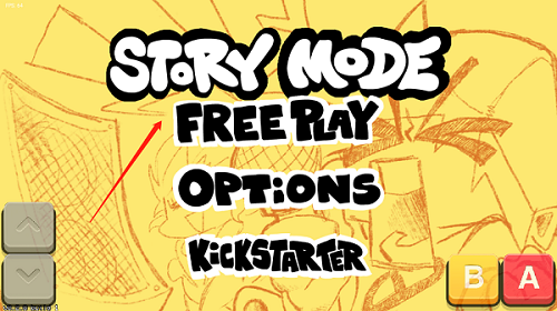 点击左侧上下键选择故事模式,点击右侧A键确定。