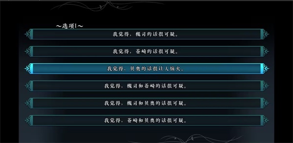 为了节约大家的时间,还是建议先通关一遍HE,以下是达成HE结局的A~Z各选项的选择:(如果你要节约通关DE/BE的时间,建议先阅读一下后文的攻略,记一下存档点)