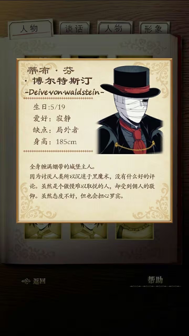 人物特性简单了解,开局拥有完整的人物信息介绍。