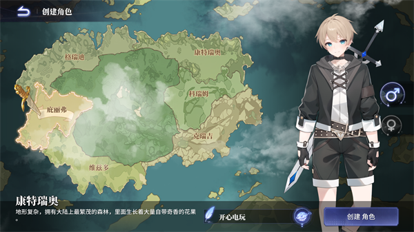 2、玩家可以自由创建角色,右侧可以更改角色性别,下方可以随机名称;