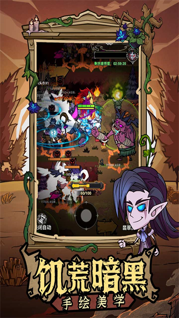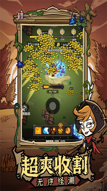 2、动态割草战斗系统:无CD的技能释放,一键清除屏幕以实现平稳割草,结合组合机制,战斗快感始终处于巅峰。