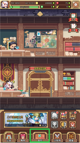 1、进入游戏后,点击冒险进行战斗;