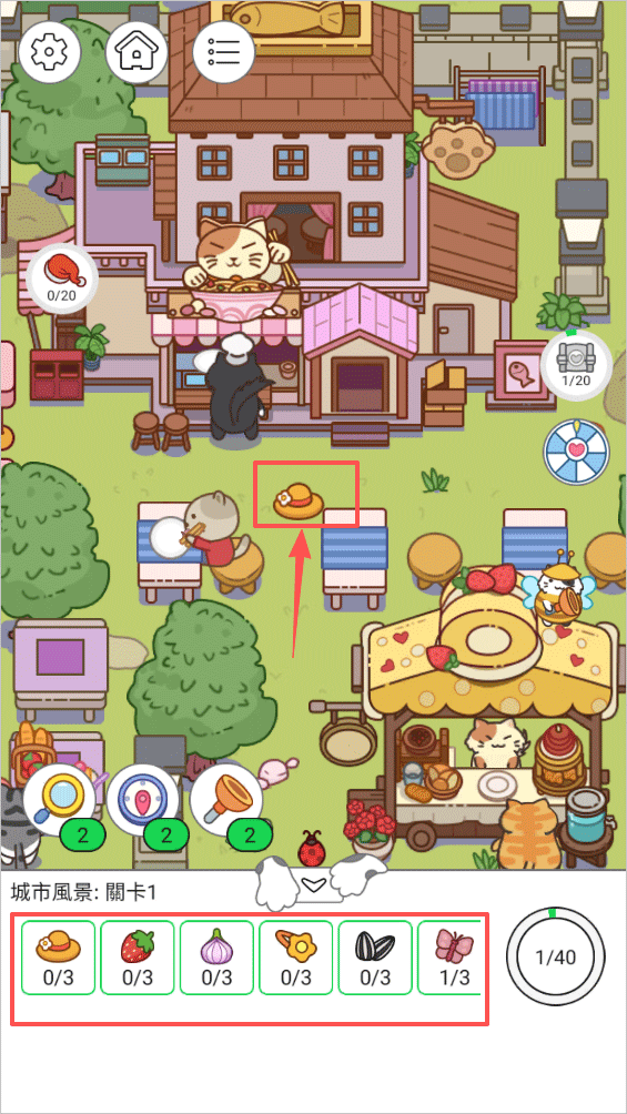 1、点击晒太阳的猫咪可能触发小游戏,成功完成会获得放大镜道具,助你看清藏在角落的微小物品。