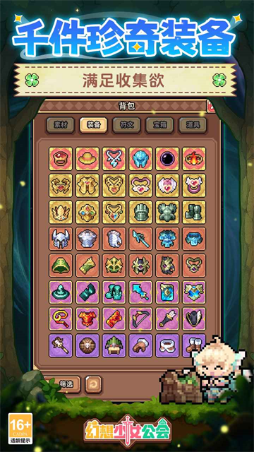 【海量珍奇装备,超萌像素收集】在拥有无限未知的幻想大陆中,隐藏着1000+件独一无二的珍奇装备!为你的魔物少女们收集装备、搭配羁绊、构建独特BD。多种战斗体系应有尽有,是开动脑筋养成专属流派,还是一键配装体验轻松策略,由你来选择~