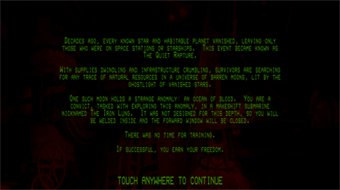 游戏完全发生在一艘名为“铁肺”的幽闭单人潜艇内。玩家必须在血海中摸索前行,拍摄关键地点的照片,并祈祷水下潜伏的怪物不会找到你。