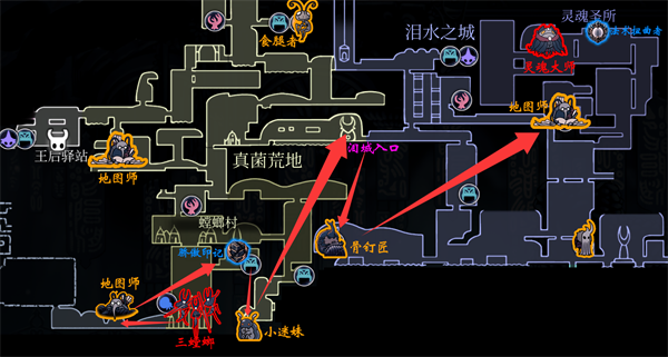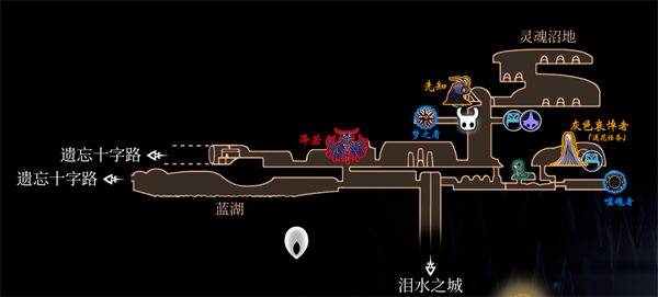 探索完泪城后回到十字路收集剩下的面具碎片和灵魂容器。