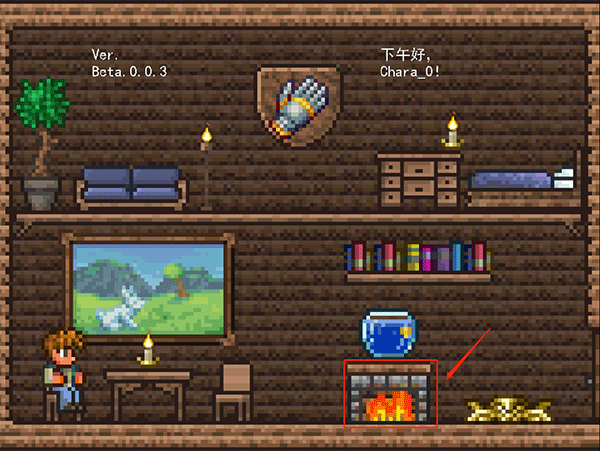 1、进入游戏后是英文界面,玩家可以点击火堆进入语言更改