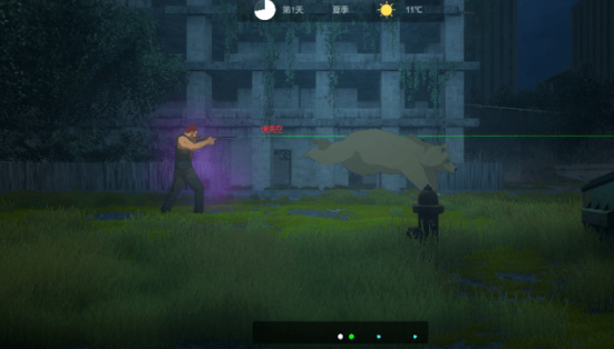 另外,游戏中还有超级多的玩法和细节体验。例如,烈酒可以取暖,当然也会喝醉;冰淇淋可以降温消暑;体力透支时赶路速度会变慢;不同子弹射击的音效和光效不同;温暖且降雨的天气植物生长的更快;废弃避难所可以一定程度的躲避炎热、寒冷,并且可以逃过野兽、追捕和雷击等;夜晚在废弃的避难所还可能会遇到幽灵等等!