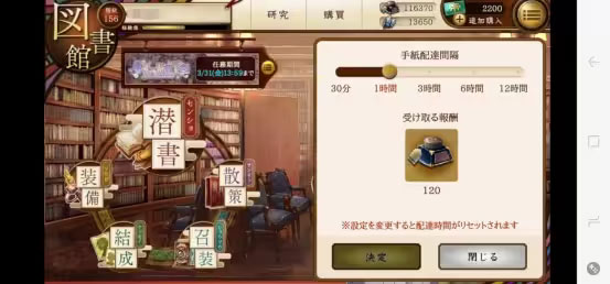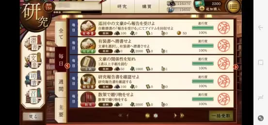 *每日任务需完成:自动潜书收取一次(详见有碍书)、有装书潜书一次(详见有装书)、信件收取一次、研究报告书确认一次(详见司书室)、散策送礼一次。