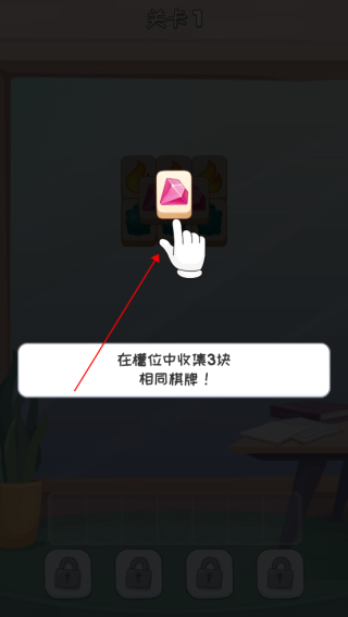 2、我们需要在槽位中收集三个同样的物品,才能进行消除,游戏玩法与“羊了个羊”类似