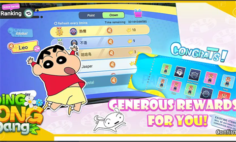 蜡笔小新叮当当是一款以蜡笔小新为主题的多人联机休闲竞技手游,在游戏中,玩家将与朋友们一起参与各种有趣的对战。游戏设有开放式地图,自由探索三个不同的岛屿,尽情体验冒险和竞争的乐趣。线上控制角色跳跃、殴打等方式与其他玩家进行互动,展示你的技巧与策略。
