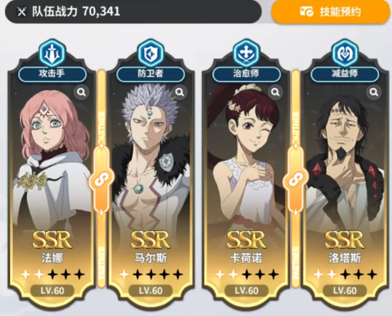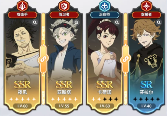 在推进到第1章第3节时,我们会获得【亚斯塔+尤诺+夏洛特】的SSR魔导士组合。根据实际情况再配置任意一位魔导士的话,可靠的「前期阵容]就诞生啦!建议重点养成尤诺,他优秀的战斗能力在冒险中能为你披荆斩棘,让你有个舒服的游戏体验!
