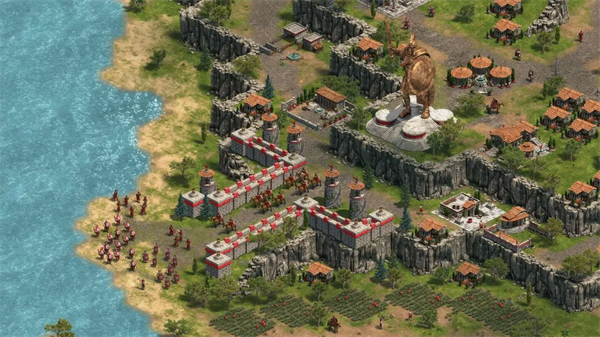 初期是散兵加戟兵,一样的防守流,等有的高级兵工厂和那张戟兵速度加快的卡片后就开始反击,由于前期经济比法国强,后期有银行,1v1一般不会输,3v3必赢。