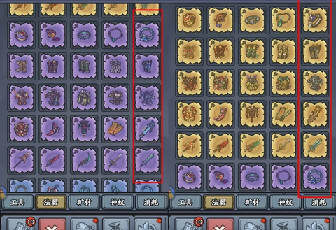 材料装备的选定用来当做材料提升主装备的词条,或者溶出第三词条的装备选定水套。原因是此套装备所需材料相对比而言最为便宜。做装备时,先做出紫装,(做装备需要往下看,不能只看金装材料,还要看蓝装,绿装所需要的材料,综合来看水套所需材料最为便宜,萌新可以留心看一下对比就能得出结论)然后看词条看五行,如有需要的词条或者符合自己灵根的高数值五行词条(个人认为55%以上都有留的价值)则直接上锁以待后用。剩下的无用之装则升级金装,再次看词条看五行。不论紫装还是金装只要出现自己需要的词条,不论数值高低一律上锁留存。无用之装用于熔第三词条,开出第三词条保存,未开出则取消,返还分解材料。