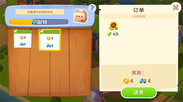 5、点击送货就可以完成定单,赚钱一定的金钱。