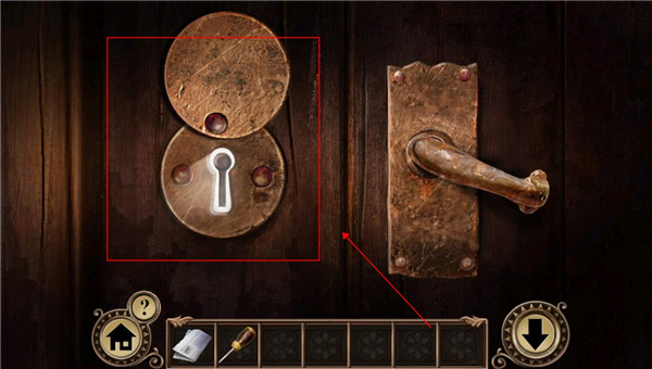 1、游戏开始后是在一个【酒窖】里。点击酒桶,在地上获得一叠报纸。点击右边墙上的电闸,上面有把螺丝刀。使用螺丝刀卸下电盒上的4个螺丝后,发现里面的保险丝烧断了。点击门的 把手,掀起钥匙洞上的铁片(手指按住铁片滑动到上方使铁片不掉下来),提示钥匙在外面。退出视角后再点击门的下方,有条缝。把报纸塞过去后,重新回到门把 手的视角,用螺丝刀将钥匙捅出去后,钥匙掉在报纸上。把报纸抽回来拿到钥匙,塞进钥匙洞后,按住门把手扳动后开门出去。(这个游戏很多门都需要这样开,不 单纯只是点一下门把手,要按住把手模拟开门的动作扳动一下才能开。)