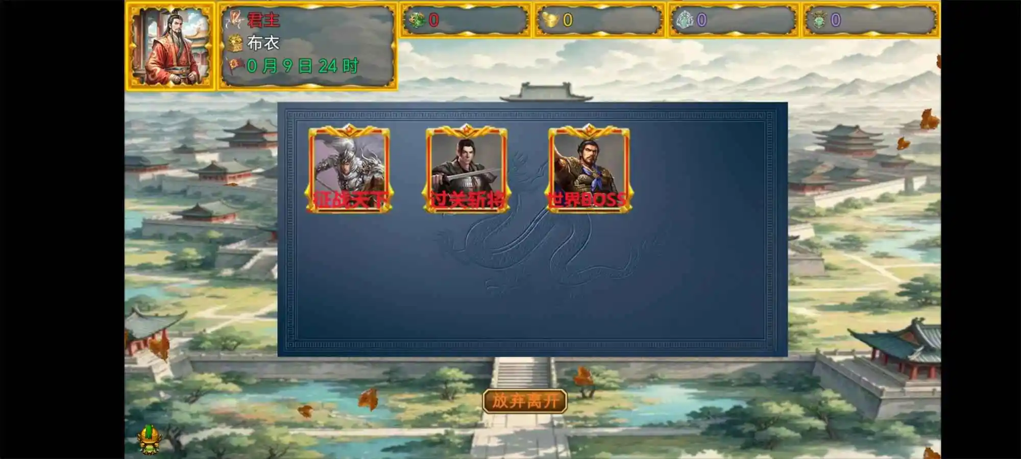 12.调整新增全新【副本-神魔战场】,开放官职:★★霸主★★【注:纳入刷新极致,一年刷新四次,每次刷新随机:项羽、张良、秦始皇】