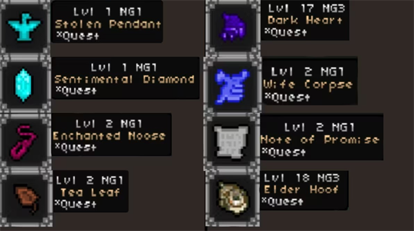 左上角黑色钥匙形状是地牢的钥匙,用于打开挑战首领的紫色大门。