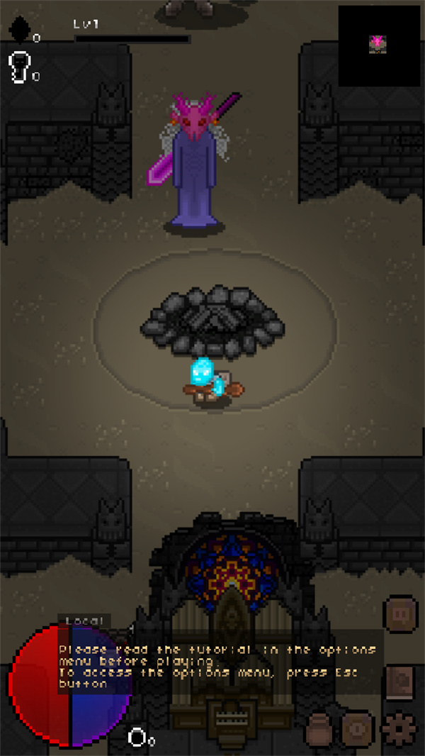 移动设备操作十分简单点击屏幕任意位置,角色就会移动到对应位置,简单来说就是点哪儿到哪儿。近战武器的攻击只通过靠近敌人自动攻击,手速越快攻速越快,但是也有最高限制。远程武器则可以长按攻击蓄力,然后拖拽进行瞄准。