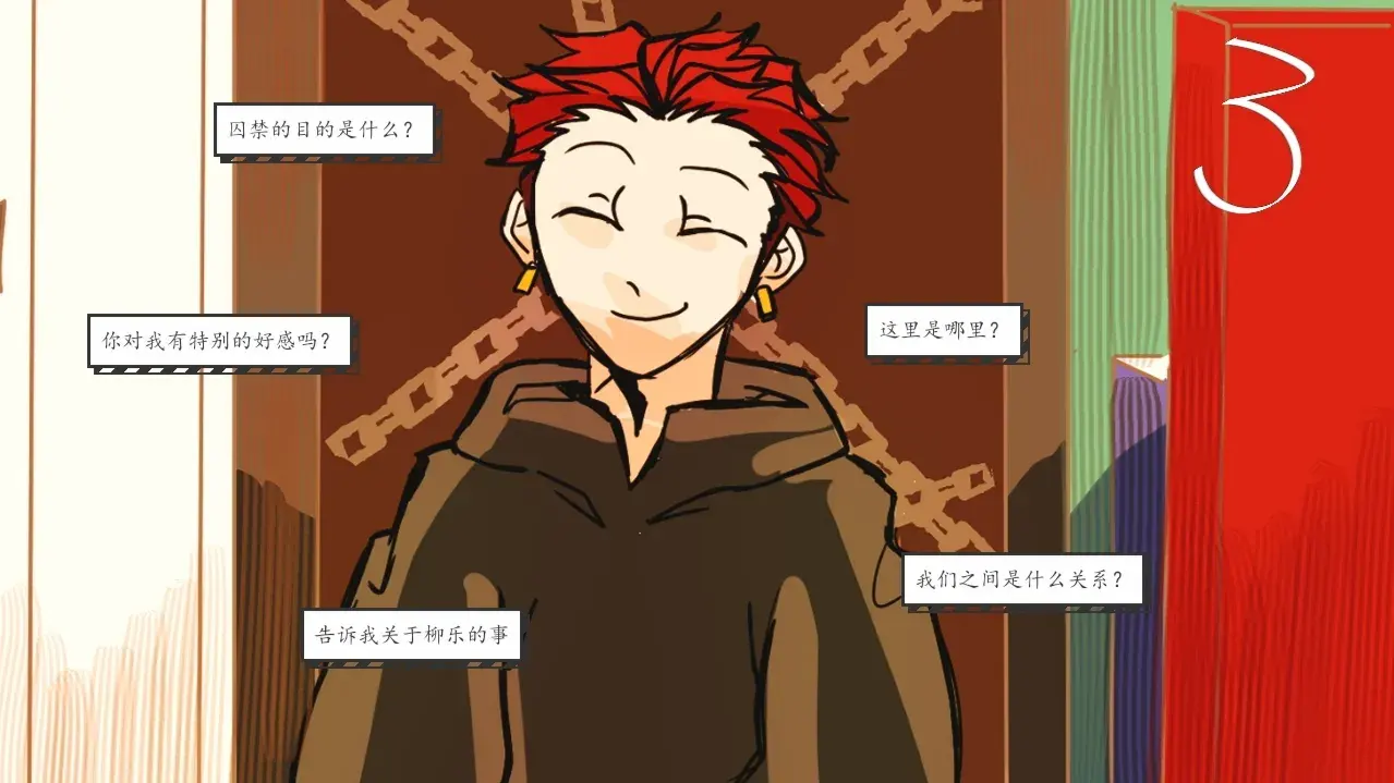 2、你会拿到一个锤子,选择不打。接着走剧情,直到到了让你问问题的环节,选你对我有什么好感、关于柳乐的故事、我们是什么关系,顺序随意,不要动别的。